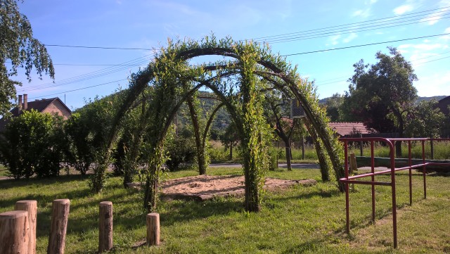 Ha a játszótéren jársz, vigyél le neked már nem kellő gyerekjátékokat a homokozóba, szedegesd ki kicsit a gyomokat, szedd össze a szemetet, hozz vizet a kútról a fűzfakunyhó mellett elhelyezett kannákban, és öntözd meg a fűzek, diók, eperfa tövét. A munka után ülj be kicsit az új árnyas homokozóba és élvezd a kilátást a közösség által táplált védelmező fűzfalevelek közül!