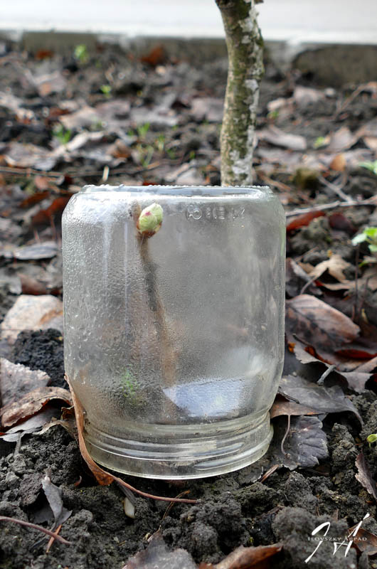 A miniatűr, befőttes üvegekből készült üvegház alatt növekedő, tavaly ősszel dugványozott jósta tövek szépen átvészelték az eleve nem túl hideg telet. Mindegyik hajtás szép rügyeket eresztett, reméljük a gyökérzetük is szépen nő, hogy ellássa a cseperdő új növénysort a Brassói út felőli szél mentén.
