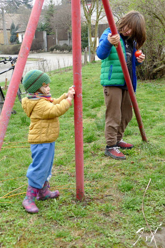 A hinta is újabb festésre szorul. A festéket, ecseteket, csiszolópapírt meg is vettük (köszönjük az Önkormányzat támogatását az anyagköltséghez), de a festés egy következő alkalomra marad, a szuper segítség alapos előkészítő munkája ellenére:
